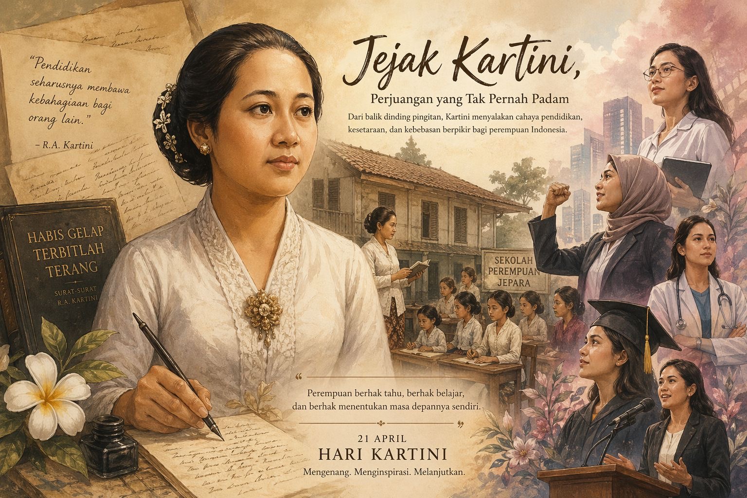 Kartini pernah menulis, bahwa pendidikan seharusnya membawa kebahagiaan bagi orang lain. Sebuah kalimat sederhana, tetapi mengandung arah perjuangan yang panjang.