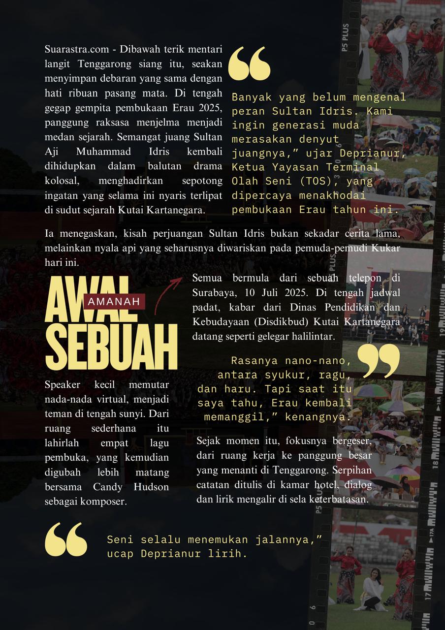 Di balik riuh tepuk tangan dan nyala lampu panggung, drama kolosal ini sejatinya bukan hanya tentang menghidupkan kembali sosok Sultan Idris, melainkan tentang bagaimana sebuah bangsa menjaga nyala ingatan.