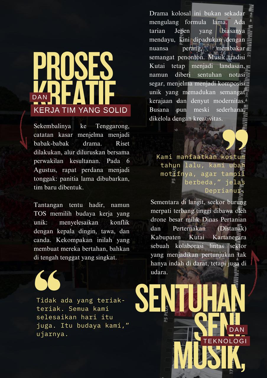 Dari semangat juang yang diwariskan, dari tawa dan air mata yang menyertai proses kreatif, hingga tarian yang melenggang di tanah leluhur semua berpadu menjadi pesan abadi.