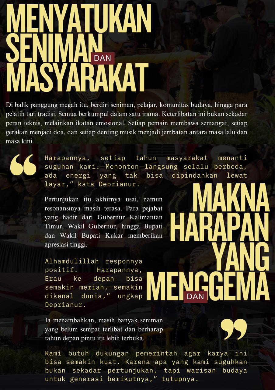 Bahwa budaya bukan sekadar kenangan, melainkan jembatan yang menghubungkan masa lalu dengan masa depan, tempat generasi mendatang menimba kekuatan dan makna.