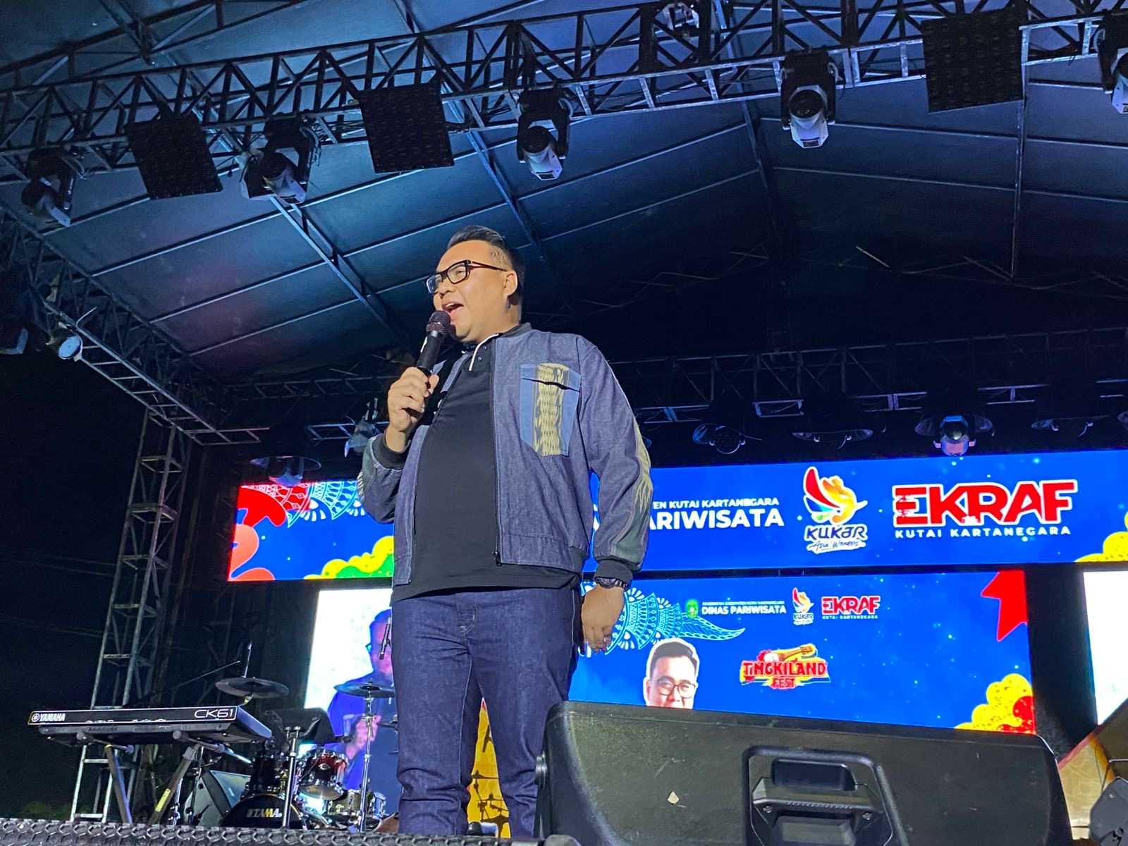 Bupati Kukar, Aulia Rahman Basri, menyampaikan sambutan yang sarat pesan kebudayaan. Dengan suara lantang, ia menegaskan bahwa Tingkiland Fest bukan sekadar konser, melainkan langkah strategis mengangkat musik daerah agar dikenali lebih luas.
